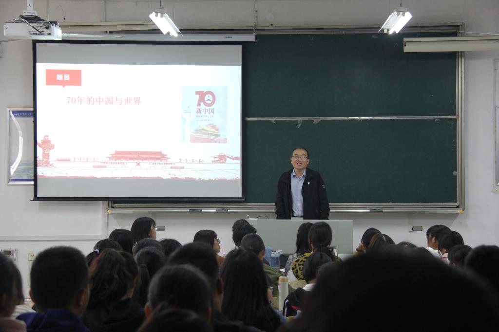11月6日,6165金沙总站官方入口党总支举办形势政策教育暨党课专题报告,学院党总支书记金文斌作《70年的中国与世界》专题报告,学生党员、入党积极分子、发展对象和部分党员教师120余人参加了报告会。