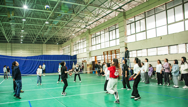 学院举行师生气排球友谊赛