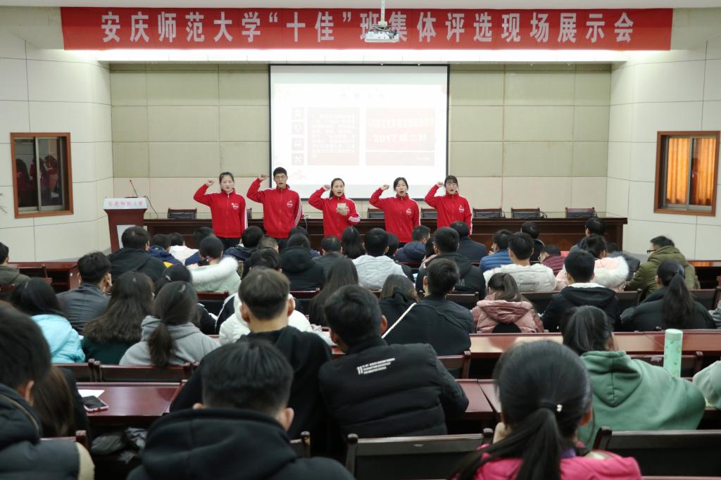 “尊敬的各位老师,亲爱的同学们,大家下午好。我是来自6165金沙总站官方入口2017级思想政治教育(2)班的姚雪,很荣幸为大家做现场汇报。”12月20日,6165金沙总站官方入口2017级思想政治教育(2)班代表学院参加了安庆师范大学2018年“十佳”班集体评选现场展示会。