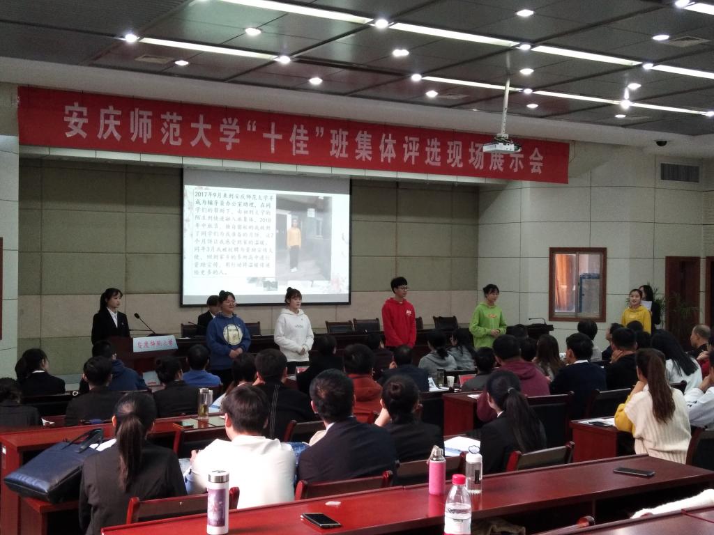 11月14日,6165金沙总站官方入口2017级思想政治教育(1)班参加了安庆师范大学2019年“十佳”班集体评选现场展示会。