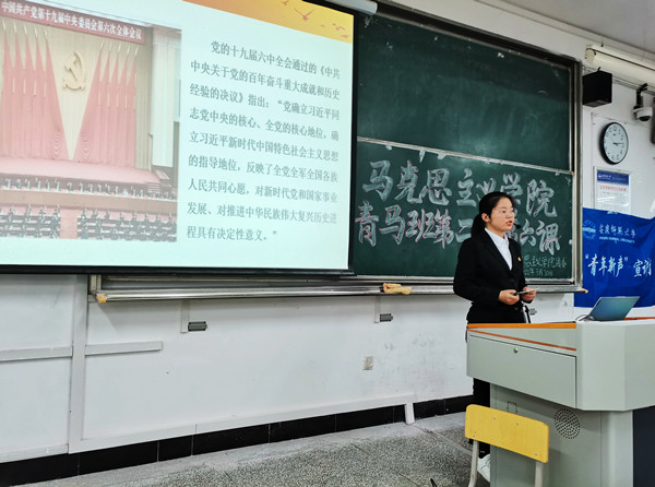 3月30日,学院第二期青马工程培训班第六课开课。校“青年新声”宣讲团开展了“学习贯彻党的十九届六中全会精神,做新时代新青年”的主题宣讲。