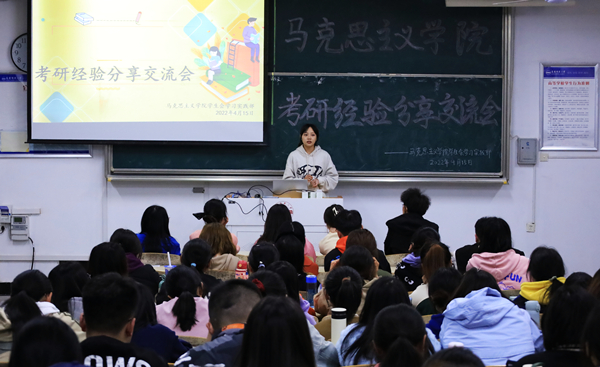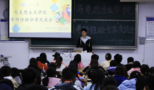 会上,12名应届毕业生从择校择专业、备考注意事项、学习经验和备考方法等方面为观众进行分享,台下学生全神贯注,不时拍下PPT中的内容做记录。“让我印象最深刻的是学长们在考研时,无论身处多么艰难的处境,都一直坚持到最后。”思想政治教育专业2020(1)班白茹月表示,通过本次分享会,她不仅收获了许多高效的学习方法,也更加坚定了自己考研的决心。