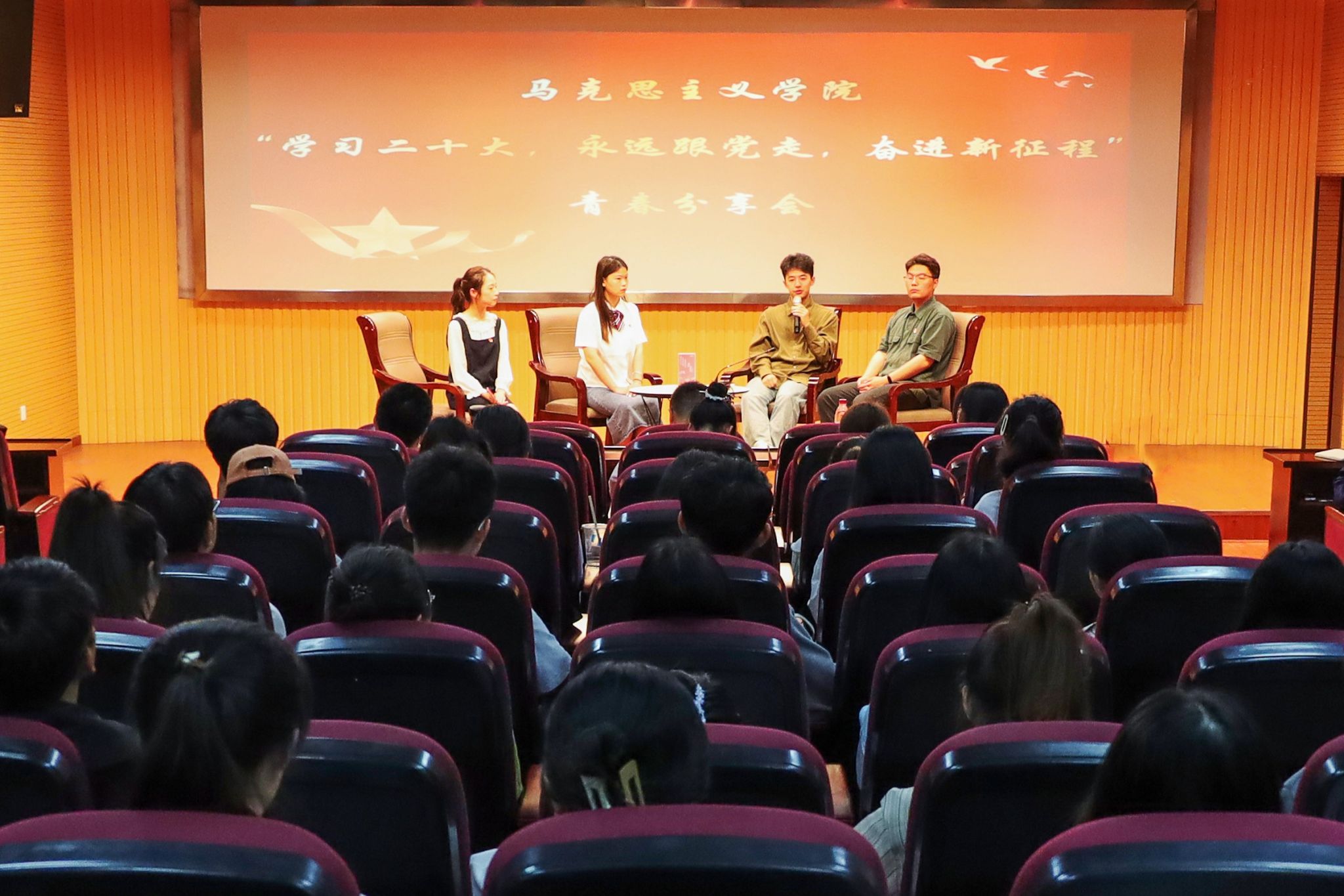 5月12日,6165金沙总站官方入口举办主题为“学习二十大 永远跟党走 奋进新征程”的青春分享会。李宝鑫、詹海祥和张梦谣三位优秀学生代表参与分享,研究生党员、第三期青马班全体学员、延乔班全体学生以及2022级本科学生代表共计120余人参加分享会。