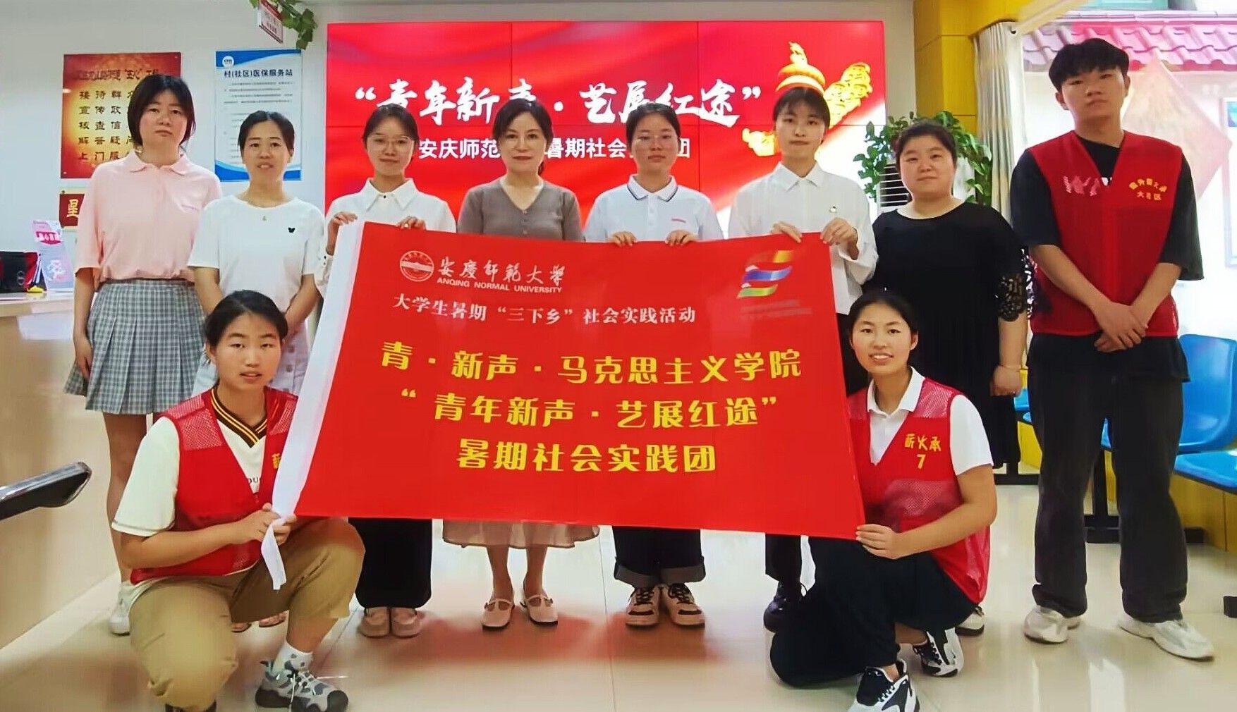 暑期,大学生“青年新声”宣讲团与大学生艺术教育俱乐部联盟联合组成“青年新声·艺展红途”理论宣讲暑期社会实践团走出校门,在安庆市区各学校及社区分散式开展多样化的党的二十大精神主题宣讲。
