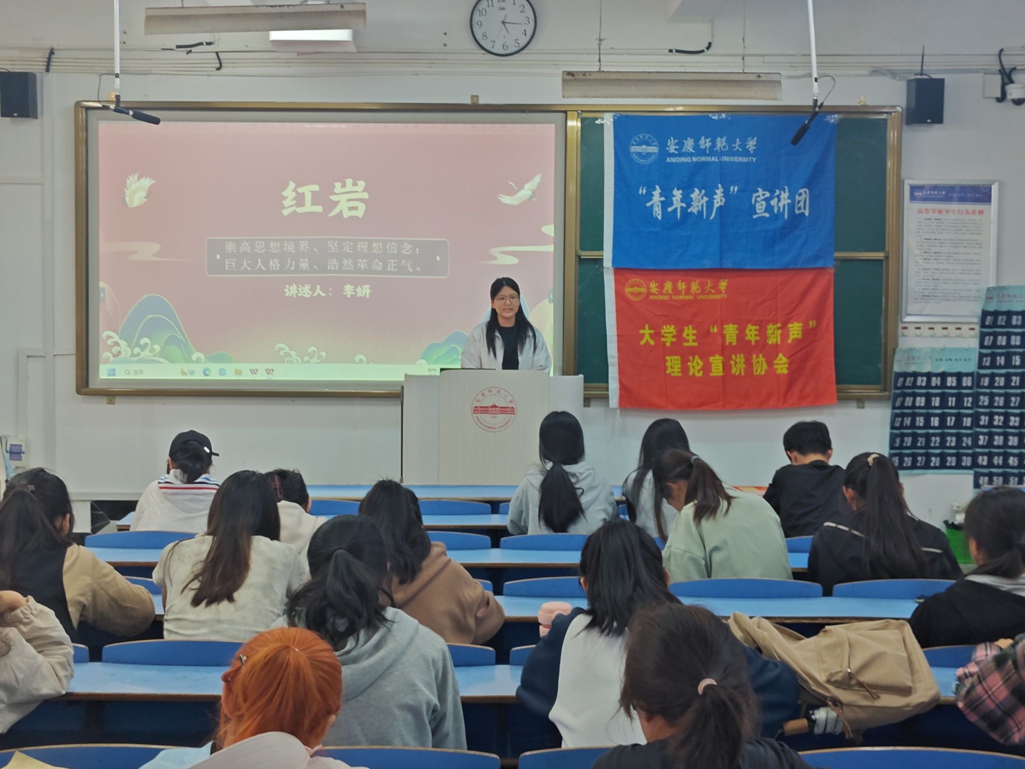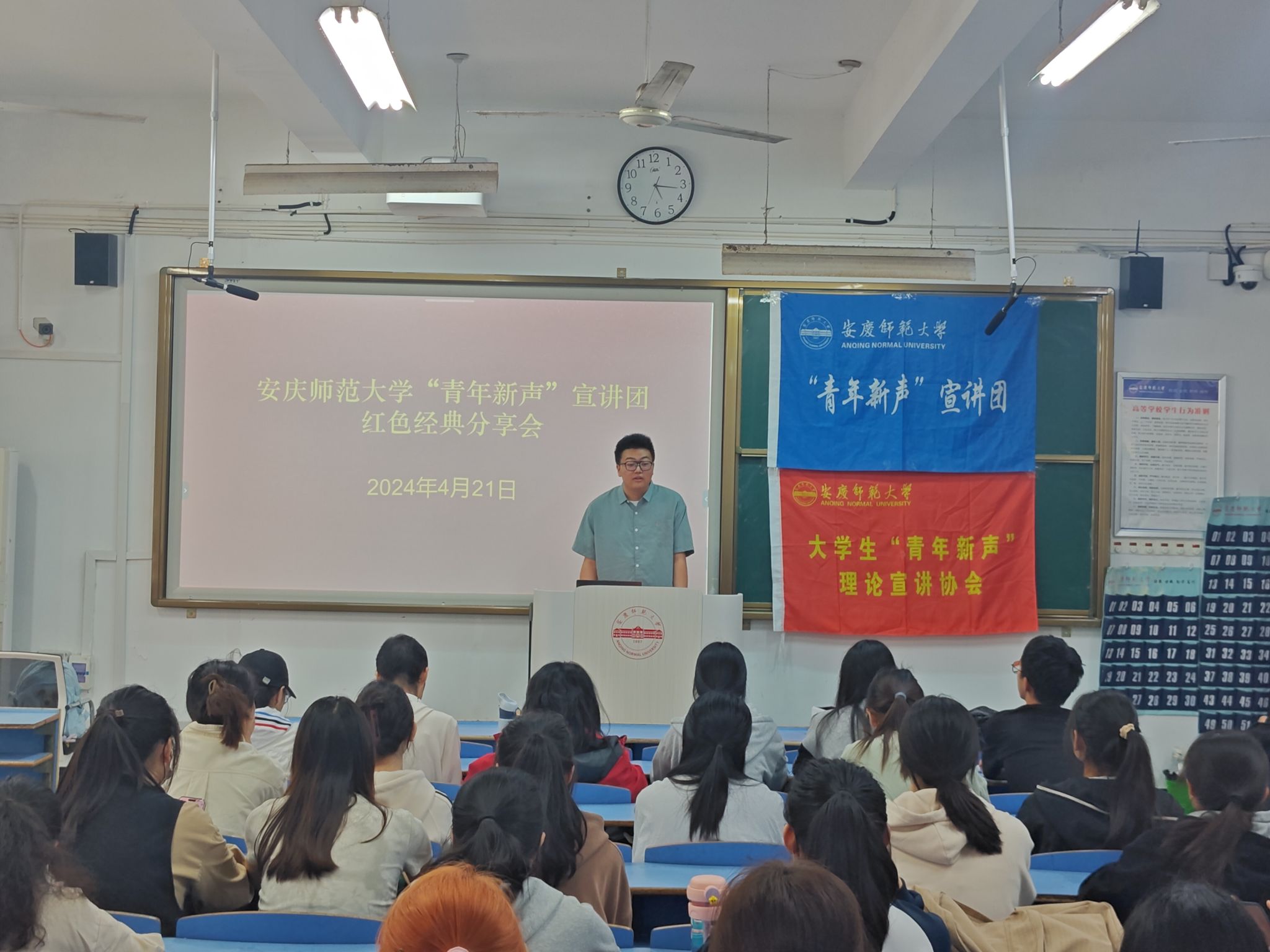 4月21日,学院在文溯楼102教室开展红色经典分享交流会。大学生“青年新声”宣讲团成员和近百名学生到场参加。