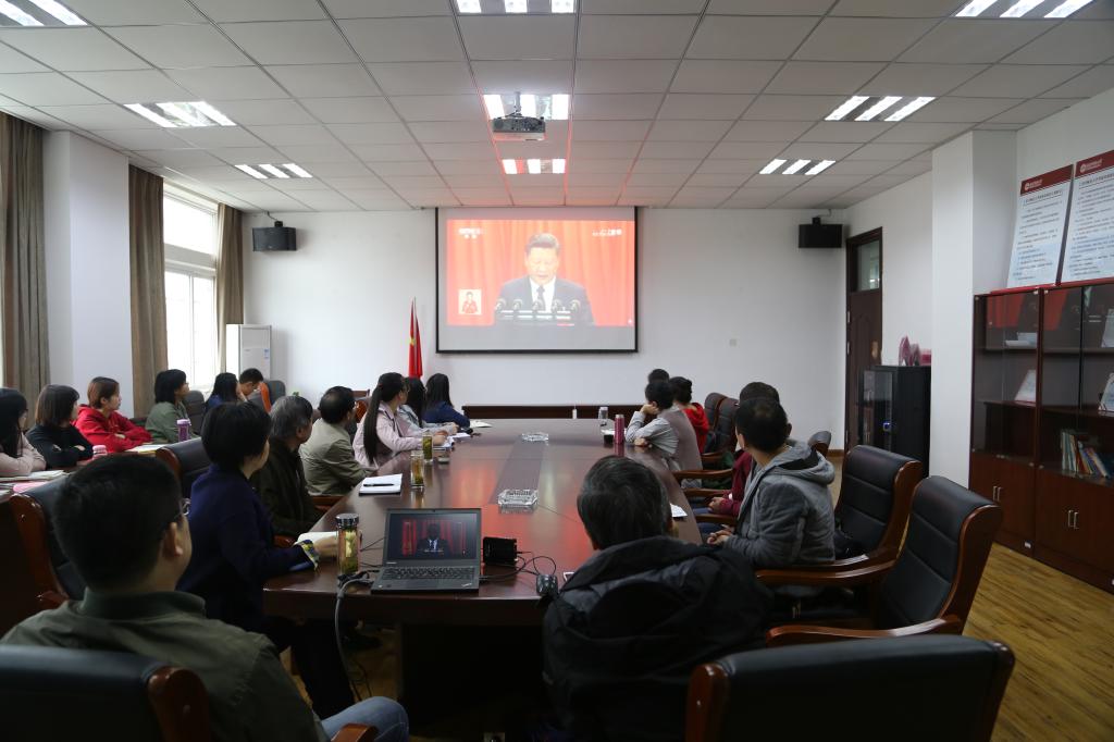 10月18日上午,6165金沙总站官方入口党总支理论中心组全体成员、办公室部分教师,以及学生党员、入党积极分子在B208会议室集中收看了党的十九次全国代表大会开幕会盛况,认真聆听了习近平总书记代表第十八届中央委员会在大会上作的报告。