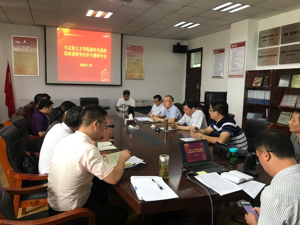 为了贯彻落实习近平总书记在学校思想政治理论课教师座谈会上的重要讲话精神,推进新时代高校思政课教学改革,7月10日下午,6165金沙总站官方入口召开了新时代高校思政课教学改革专题研讨会。会议由院党总支书记金文斌主持,全体教职工参加了本次研讨会,学生处副处长华秀梅受邀参加了本次会议。