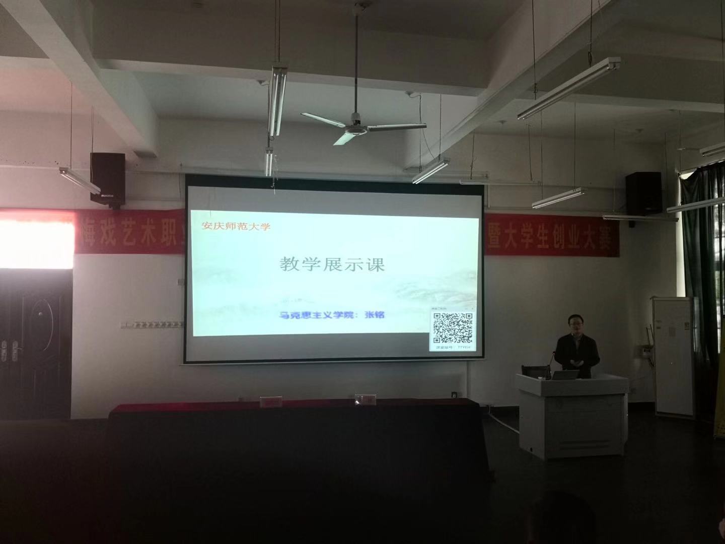 10月16日下午,应安徽黄梅戏艺术职业学院的邀请,6165金沙总站官方入口教师、全省高校优秀思政课示范课巡讲团成员张铭在黄梅戏职院文化楼101教室进行一堂思政课示范课教学展示。黄梅戏职院党委副书记、院长苏斌、部分党委班子成员、相关部门负责人、全体思政理论课教师、辅导员及2019级部分新生参加了相关活动。