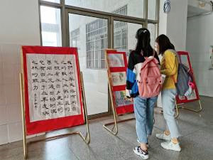 优秀作品在教学楼大厅展出时,吸引了许多老师、同学的目光。来自思想政治教育专业2020级(2)班的吴梦娟在参观时说道:“通过书写优秀传统诗词和爱国经典语录,可以丰富课余生话,培养书法兴趣。尤其对于师范生而言,写好钢笔字、粉笔字和毛笔字又是我们必备的技能,这个活动很有意义。”