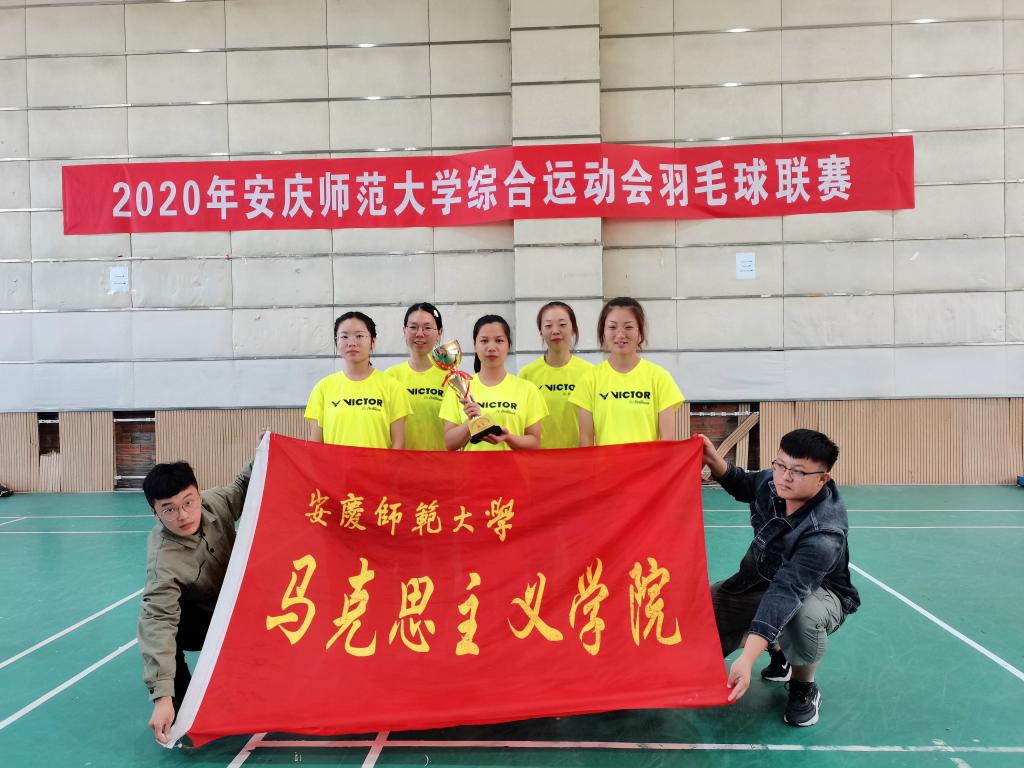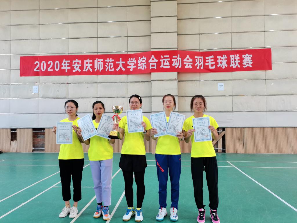 为进一步丰富学生课余文化生活,增强学生身体素质,2020年10月21-25日,安庆师范大学举办校羽毛球联赛,学院学子积极参加,并最终赢得女子团体赛冠军。其中郑宗文、唐倩云两位同学分别获得女子单打第一名、第二名的好成绩。