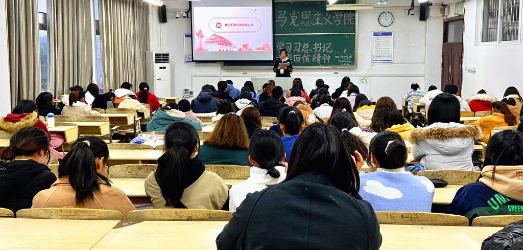 近日,学院组织学生学习习近平总书记给人民教育出版社老同志的回信,团委学生会、艺术中心、“思源”青年志愿服务队及“青年新声·学‘四史’”宣讲团90多人参加。