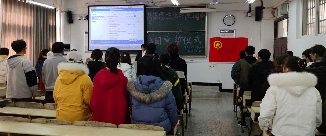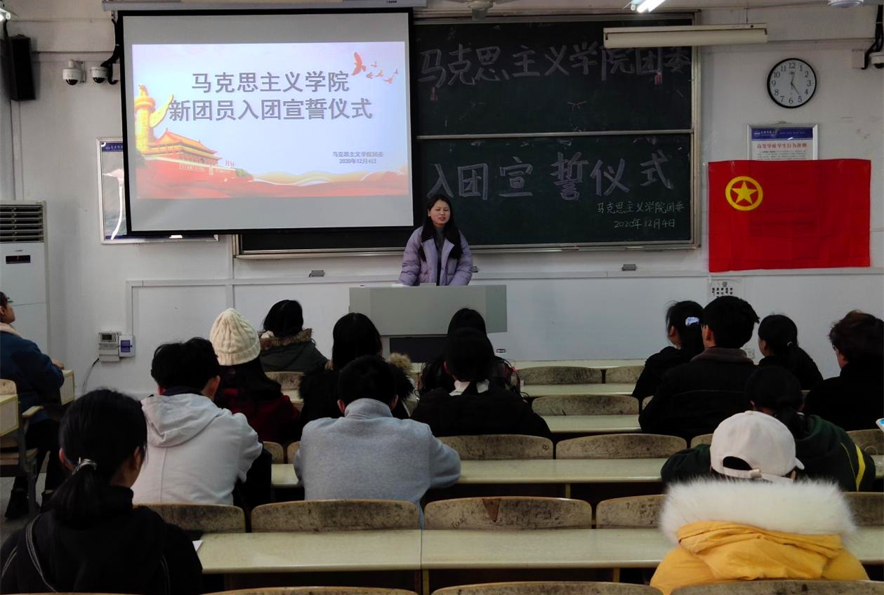 12月4日下午,学院举行新团员入团宣誓仪式。学院团委副书记贺佳欢、各班团支部委员、2019、2020级新团员及本期团课培训结业学生参加仪式。