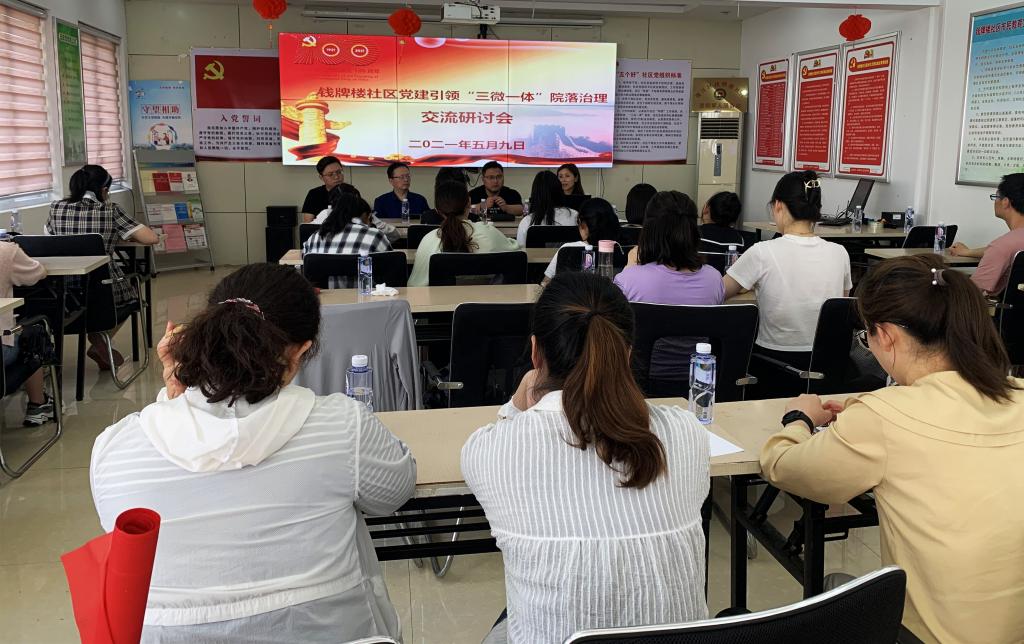 交流会上,钱牌楼社区党委书记李宝琴向同学们介绍了社区党建引领“三微一体”院落治理项目,带领同学们了解钱牌楼社区的基本情况,结合实际分析项目区域现状、项目实施目标,并具体介绍了项目中的主要工作——“培养‘微组织’”、“开展‘微行动’”、“实施‘微服务’”,及其实施步骤。随后,肖振波就如何调动青年居民参与社区治理的问题与同学们进行交流,并为同学们介绍了市域社会治理下网格化服务管理工作的相关内容,主要从存在问题、工作要求、努力方向三个方面结合社区实例展开。学院带队老师向参加对接活动的街道、社区领导表示感谢,学院研究生支部准备从理论宣讲、项目调研和社区服务三个方面参与社区治理,同时希望学生能够将专业知识与实践相结合,在参加活动的过程中,积极撰写专业论文和调研报告,在学术和实践上都有所收获。交流最后李宝琴书记再次强调社区共建的重要意义,鼓励同学们多思考、多参与,发挥理论优势,助力社区治理。