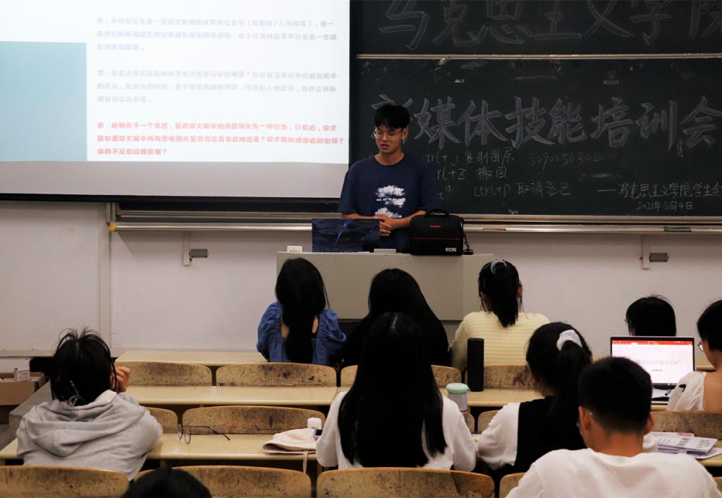 “听了林馨同学和王权同学通俗易懂的讲法让我更直观的了解PS的用法,新闻稿和摄影的培训,也让我了解到更多专业知识,学到了很多写稿拍照的小技巧。”思想政治教育专业2019(3)班的吴雪莹表示。