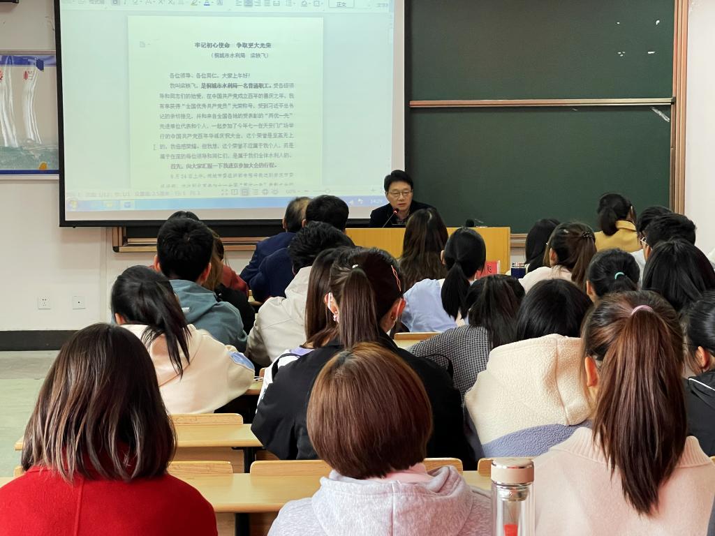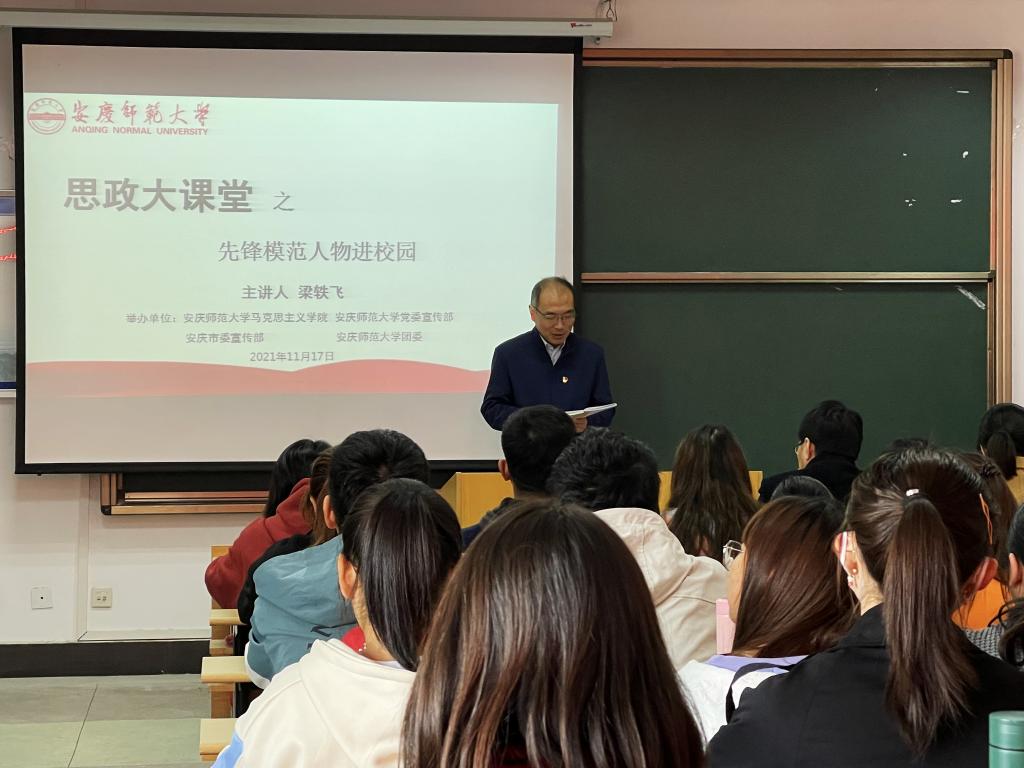 11月17日,6165金沙总站官方入口、学校党委宣传部、安庆市委宣传部、学校团委举办“思政大讲堂之先锋模范人物进校园”专题报告会。全国优秀共产党员——安徽省桐城市水利局党组成员、水利局水保工程建设管理所所长梁轶飞受邀作报告,6165金沙总站官方入口党委书记金文斌、学校团委副书记赵丽丽、学院团委副书记与120多名学生代表参加本次活动。
