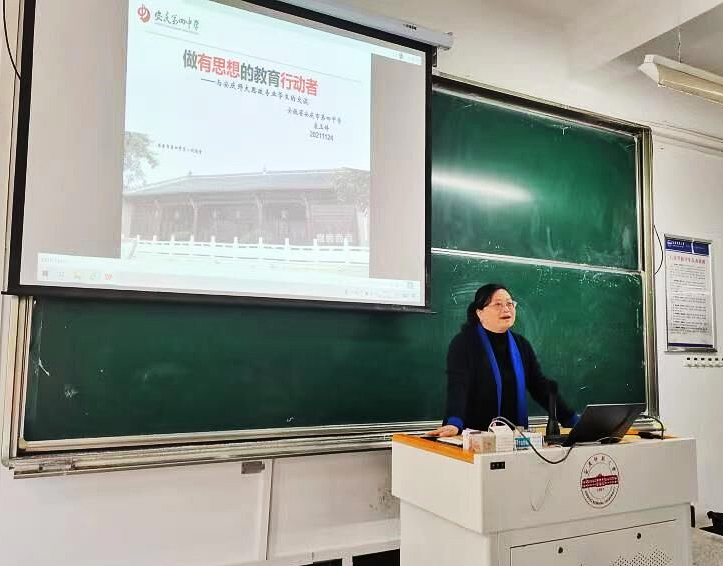 袁玉婷副校长围绕“做有思想的教育行动者”这一主题,从“在阅读中成长”、“在教学中进步”、“在研究中提升”与“个人心得感悟”四个方面展开交流,并结合新教改与自身教学经历,指出优秀思政课教师需要广泛阅读书籍,不断更新知识储备,以适应时代发展变化。