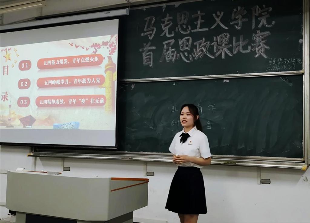 决赛中,14位学生化身思政课教师,围绕思政课程中的有关章节或专题,结合新时代重大主题和时事热点问题进行讲课。经过一番激烈竞争,本科方悦彤、夏同童,硕士生王颖、曾慧馨4名同学进入前四名,将代表学院参加校赛。
