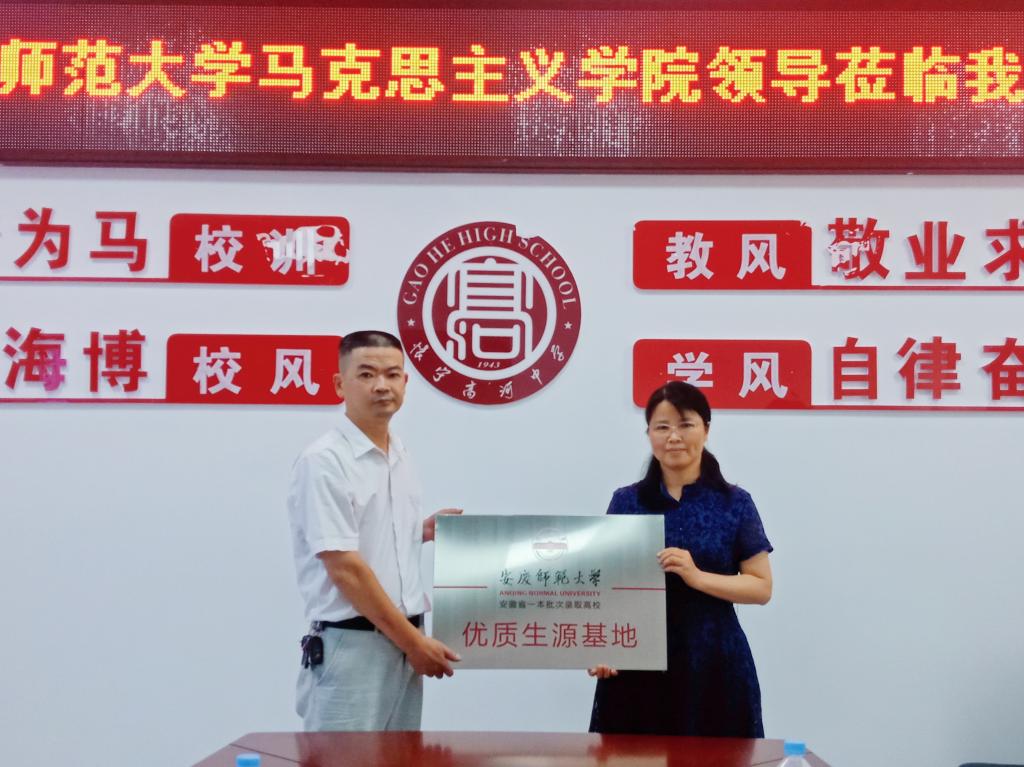 严仍昱一行向两所中学的领导、老师及部分家长详细地介绍了我校2022年本科生招生计划和招生政策以及我校的办学历史、办学特色、办学成就、专业设置、学科建设、就业创业、考研升学、出国深造等情况,耐心回答了老师及家长们的问题,发放了《安庆师范大学2022报考指南》等材料,并代表学校与高河中学签订了优质生源基地协议书,举行了授牌仪式。