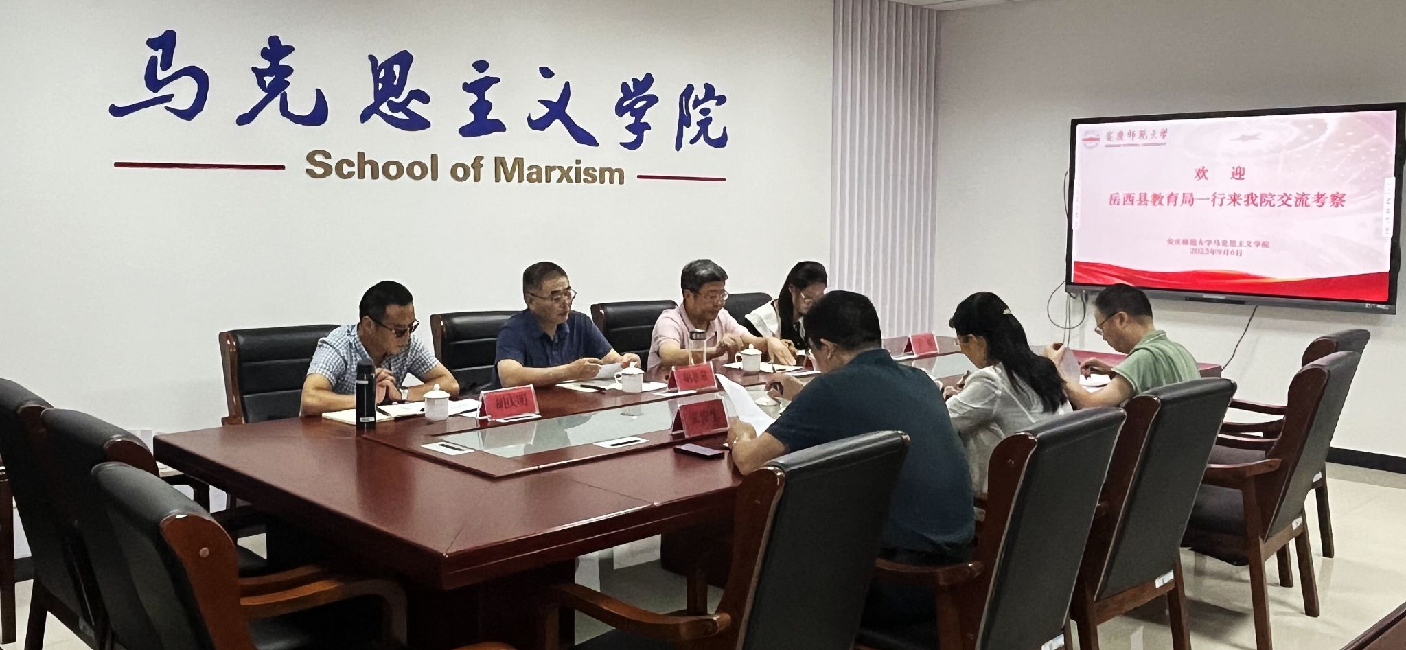 9月6日,岳西县教育局党委副书记、副局长胡非常一行4人来学院交流考察,商讨岳西县思政课教师队伍建设相关事宜,学院院长严仍昱、副院长张俊生及相关工作人员参加了此次交流会议。