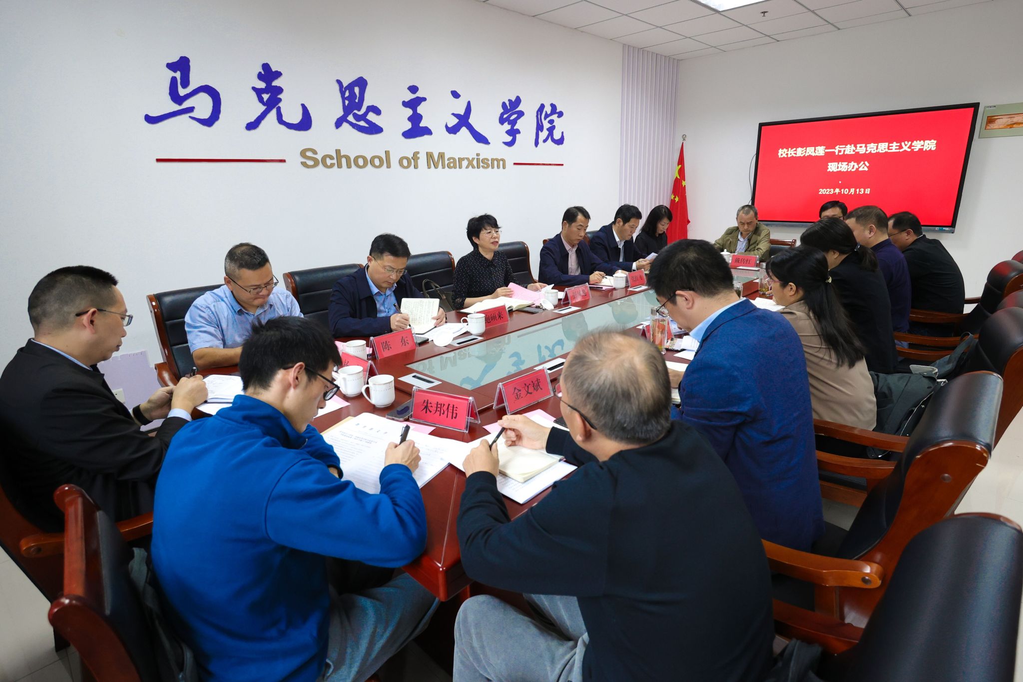 10月13日,校长彭凤莲深入学院调研,召开推动贯彻执行《普通高等学校6165金沙总站官方入口建设标准(2023年版)》现场办公会。校党委常委陈秀、张红飞及党委宣传部、学科建设处、人事处、教务处、科研处、研究生院、财务处等单位负责人参加调研。
