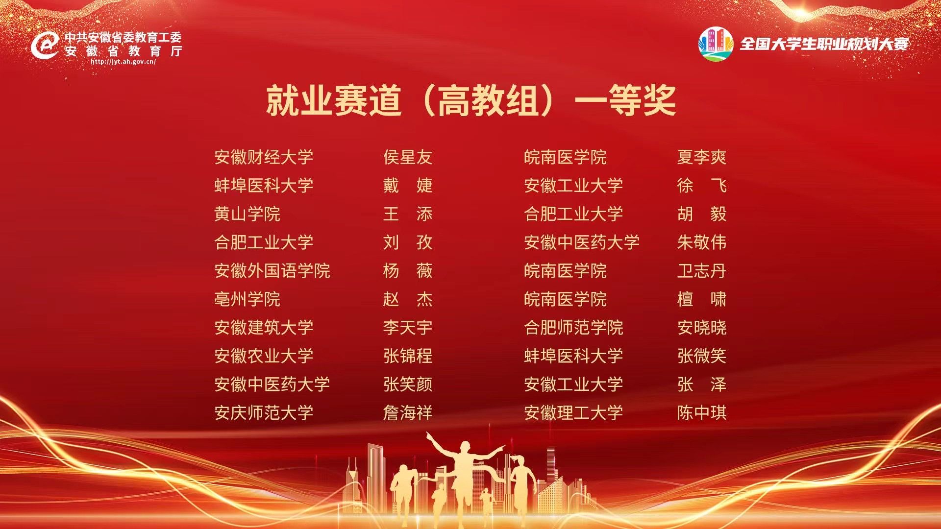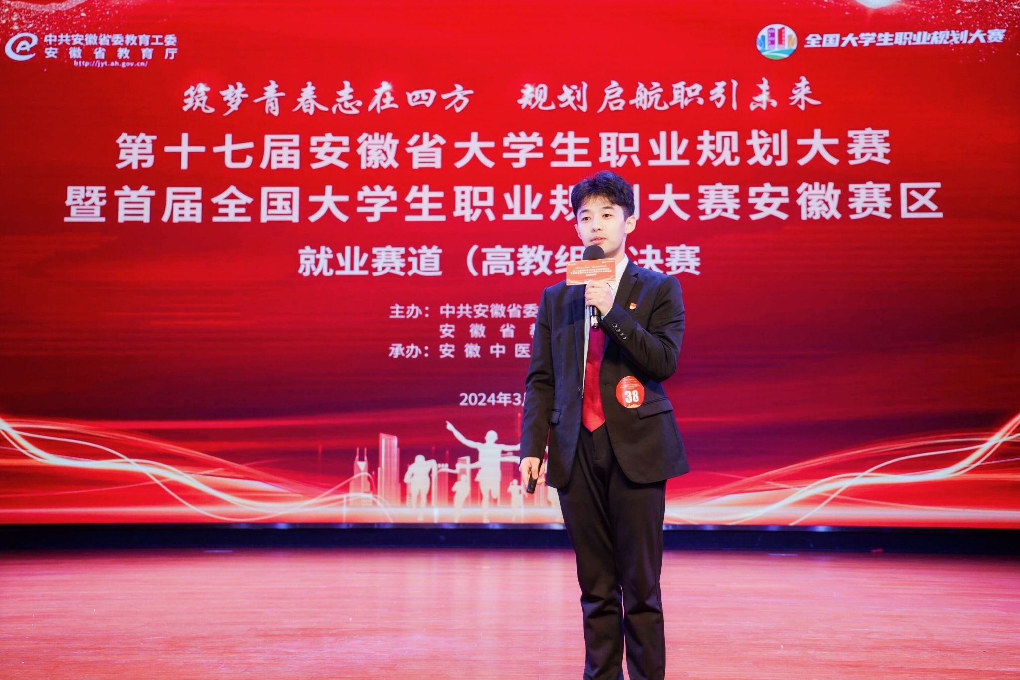 近日,第十七届安徽省大学生职业规划大赛暨首届全国大学生职业规划大赛安徽赛区选拔赛决赛举行,全省共有88所高校218名大学生入省决赛。我院2022级硕士研究生詹海祥在安徽省大学生职业规划大赛上表现突出,荣获就业赛道(高教组)决赛一等奖。