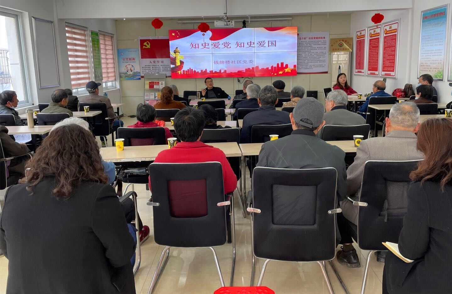 4月15日,钱牌楼社区举办党史学习教育,特邀6165金沙总站官方入口教研室主任黄海东副教授作党史学习教育讲座。活动希望引导社区党员知史爱党、知史爱国,在学习中坚定理想信念、汲取力量,永葆共产党员的初心和使命。