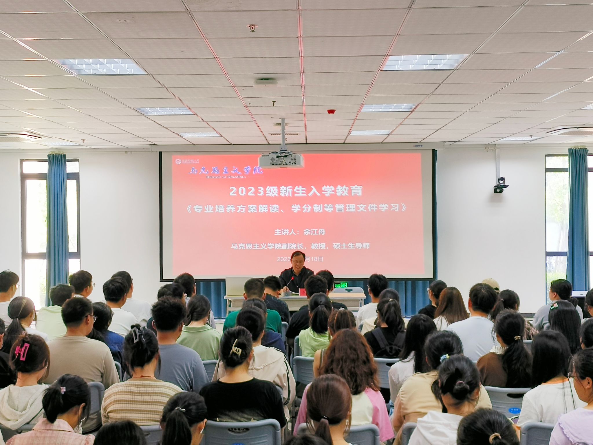 10月18日,学院在Q119举办了2023级新生入学教育大会,2023级全体新生参加,大会由学院副院长余江舟主讲。